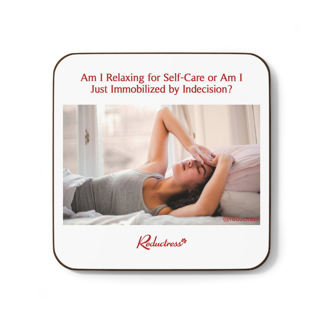"Am I Relaxing for Self-Care or Am I Just Immobilized by Indecision?" Hardboard Back Coaster