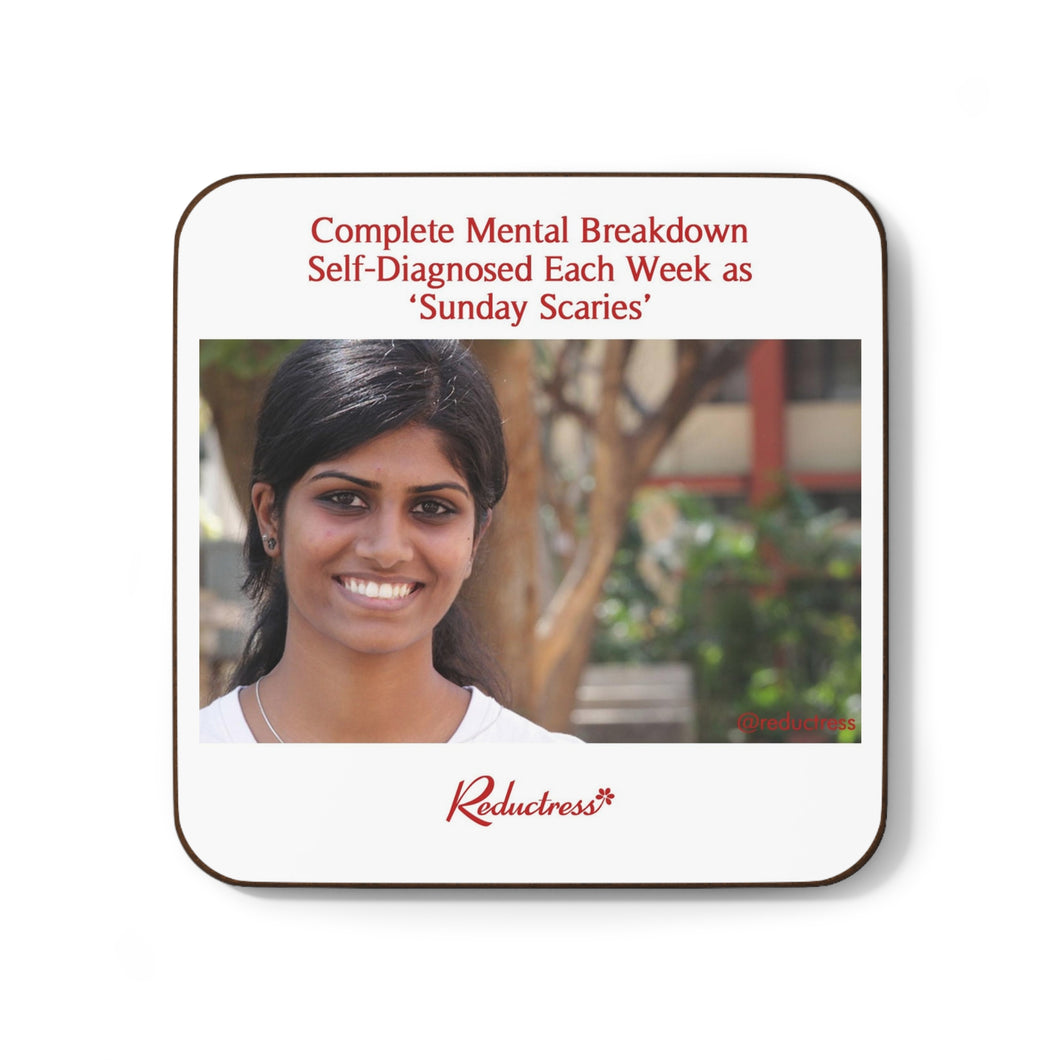 "Complete Mental Breakdown Self-Diagnosed Each Week as ‘Sunday Scaries’" Hardboard Back Coaster