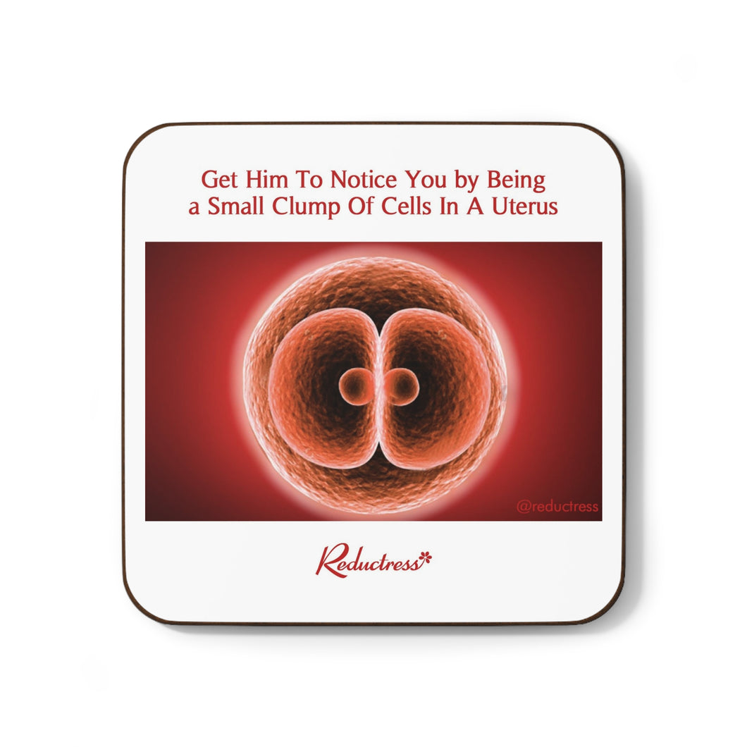 "Get Him to Notice You by Being a Small Clump of Cells in a Uterus" Hardboard Back Coaster
