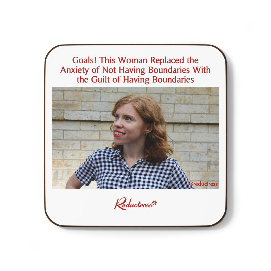 "Goals! Woman Replaced the Anxiety of Not Having Boundaries With the Guilt of Having Boundaries" Hardboard Back Coaster