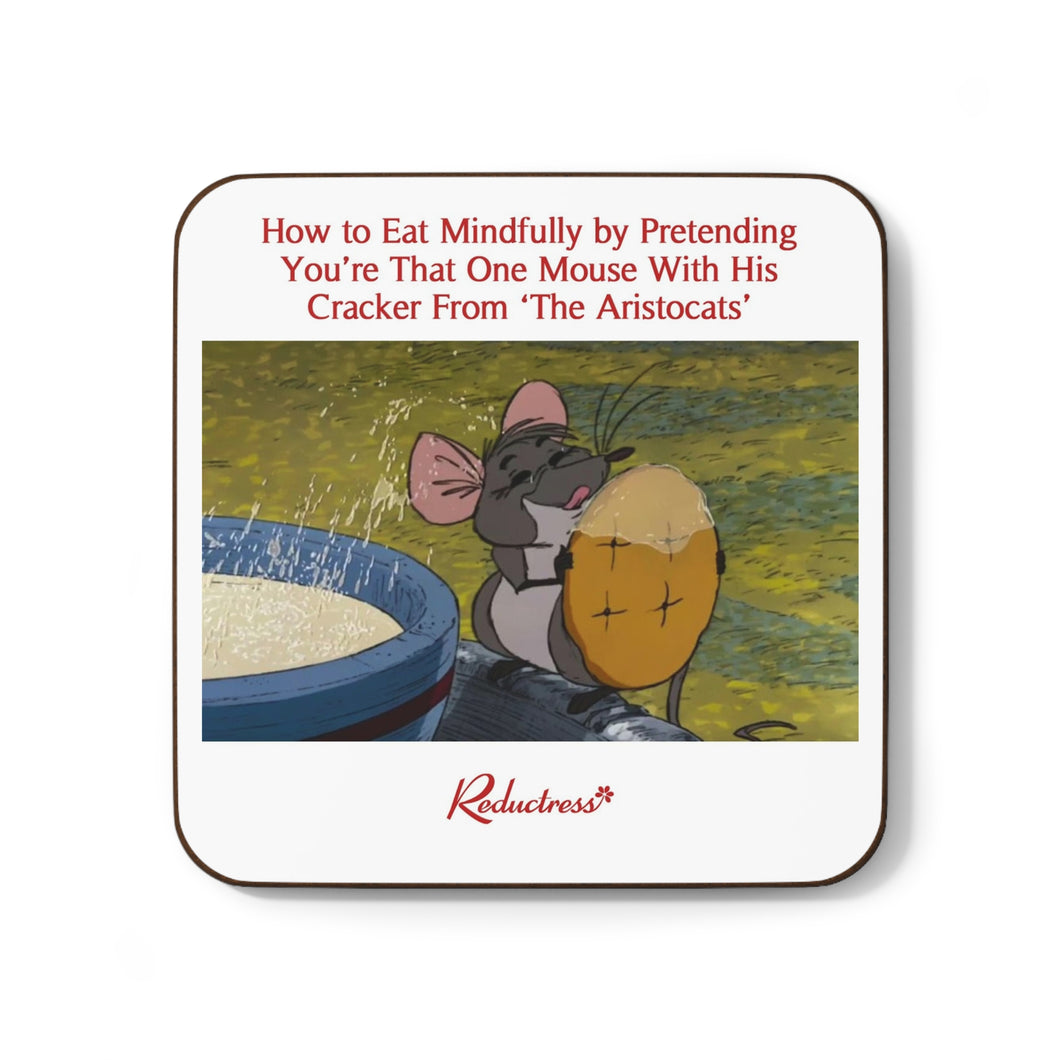 "How to Eat Mindfully By Pretending You're That One Mouse With His Cracker From 'The Aristocats'" Hardboard Back Coaster