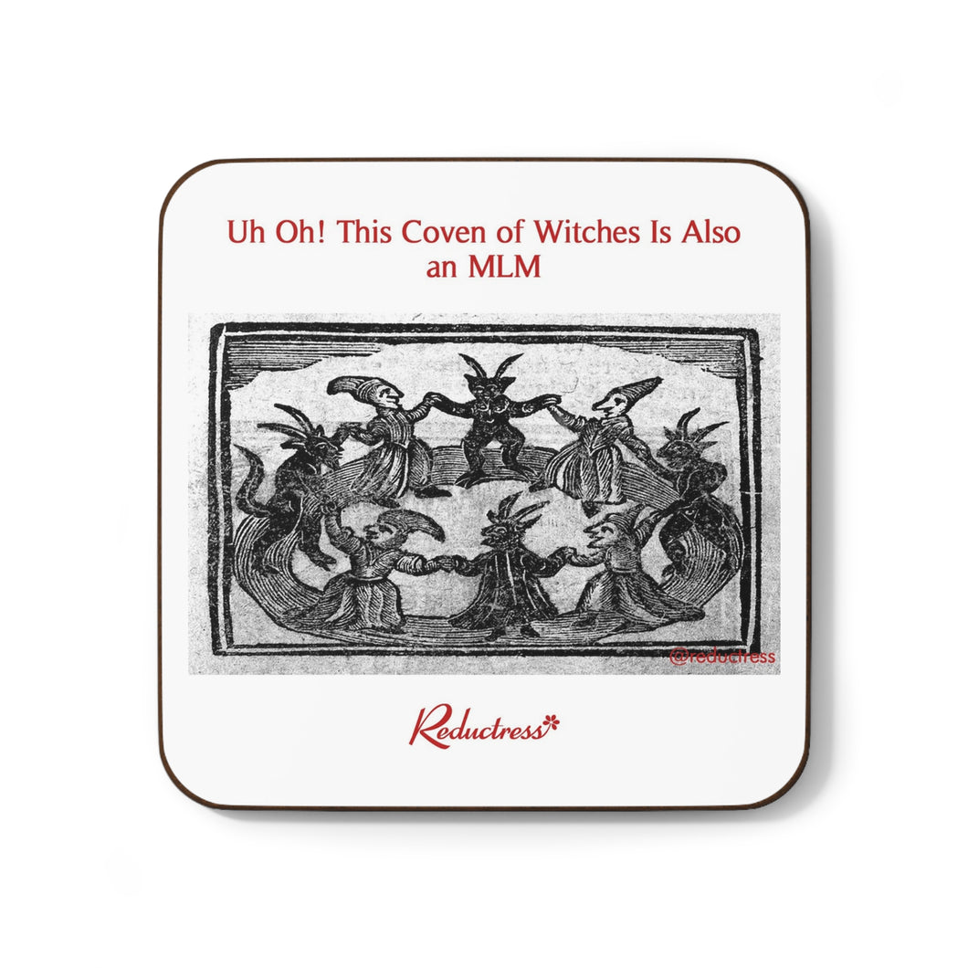 "Uh Oh! This Coven of Witches Is Also an MLM" Hardboard Back Coaster