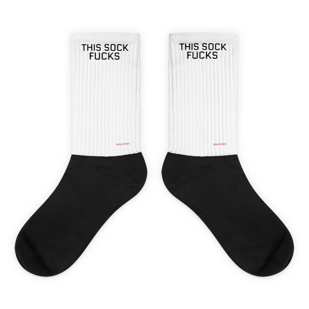 These socks, which do actually fuck,* are extra comfortable thanks to their cushioned bottom. The foot is black with artwork printed along the leg with crisp, bold colors that won't fade.